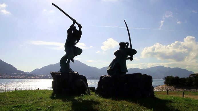 At around twenty nine years old, Musashi heard of Kojirō’s growing fame and asked Lord Hosokawa Tadaoki through an intermediary to arrange a duel. Tadaoki agreed to the challenge and set a time and place of13th April, 1612, with the duel to be held on the remote island of Ganryujima in Funashima. This island, located in the strait between Honshū and Kyūshū, was likely chosen to prevent interference in the duel. There were concerns that the many students Kojirō had accumulated may attempt to kill Musashi if he was indeed to win.